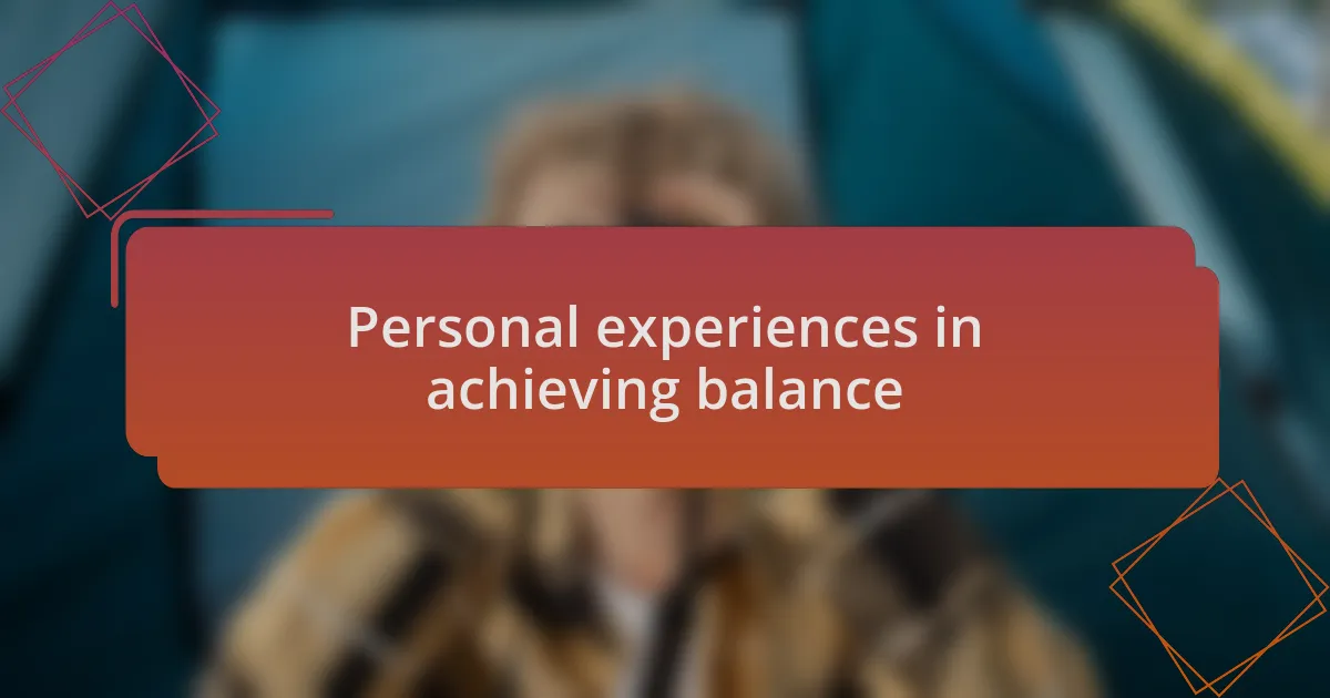 Personal experiences in achieving balance